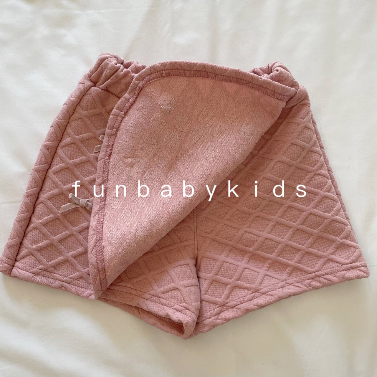 特色:褲裙設計,表面像鬆餅格壓紋設計